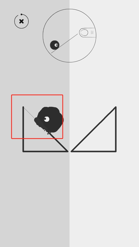 2、觸發(fā)上方機(jī)關(guān)改變軌道,引導(dǎo)黑色物體沿新路徑滾動(dòng),使其落入左側(cè)紅框區(qū)域,利用地形和軌道變化,精準(zhǔn)控制物體落點(diǎn)。