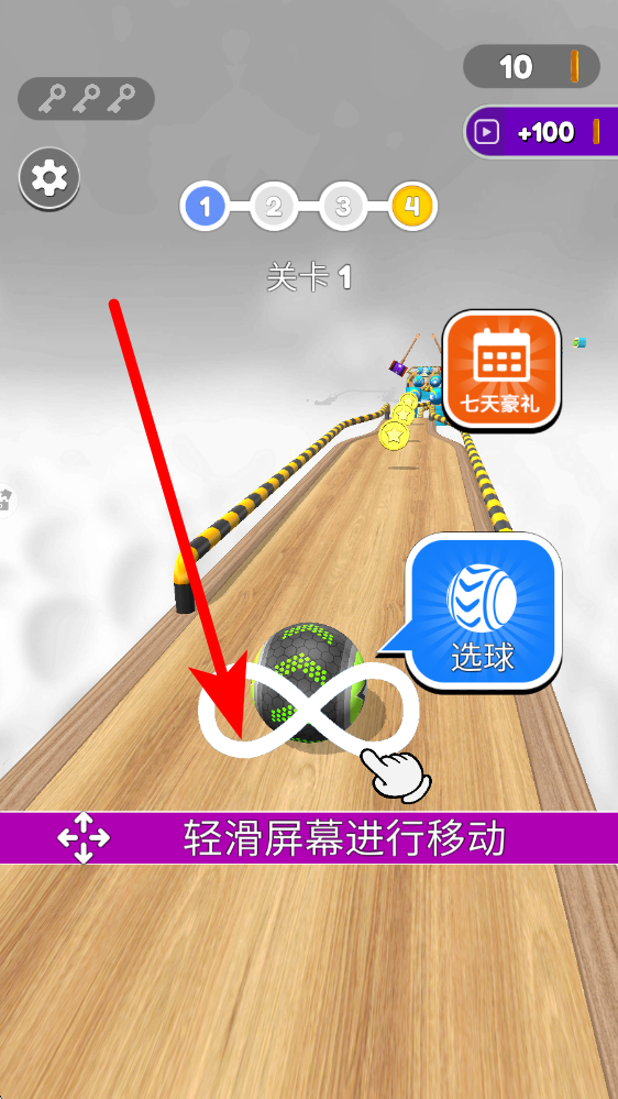 1、基礎(chǔ)移動輕滑屏幕控制小球移動方向,在賽道上靈活調(diào)整位置,避開邊緣掉落,也可借此靠近金幣、道具,為后續(xù)跑酷打基礎(chǔ)。