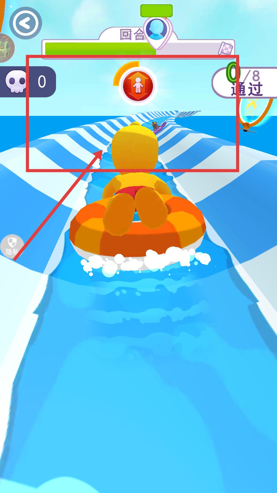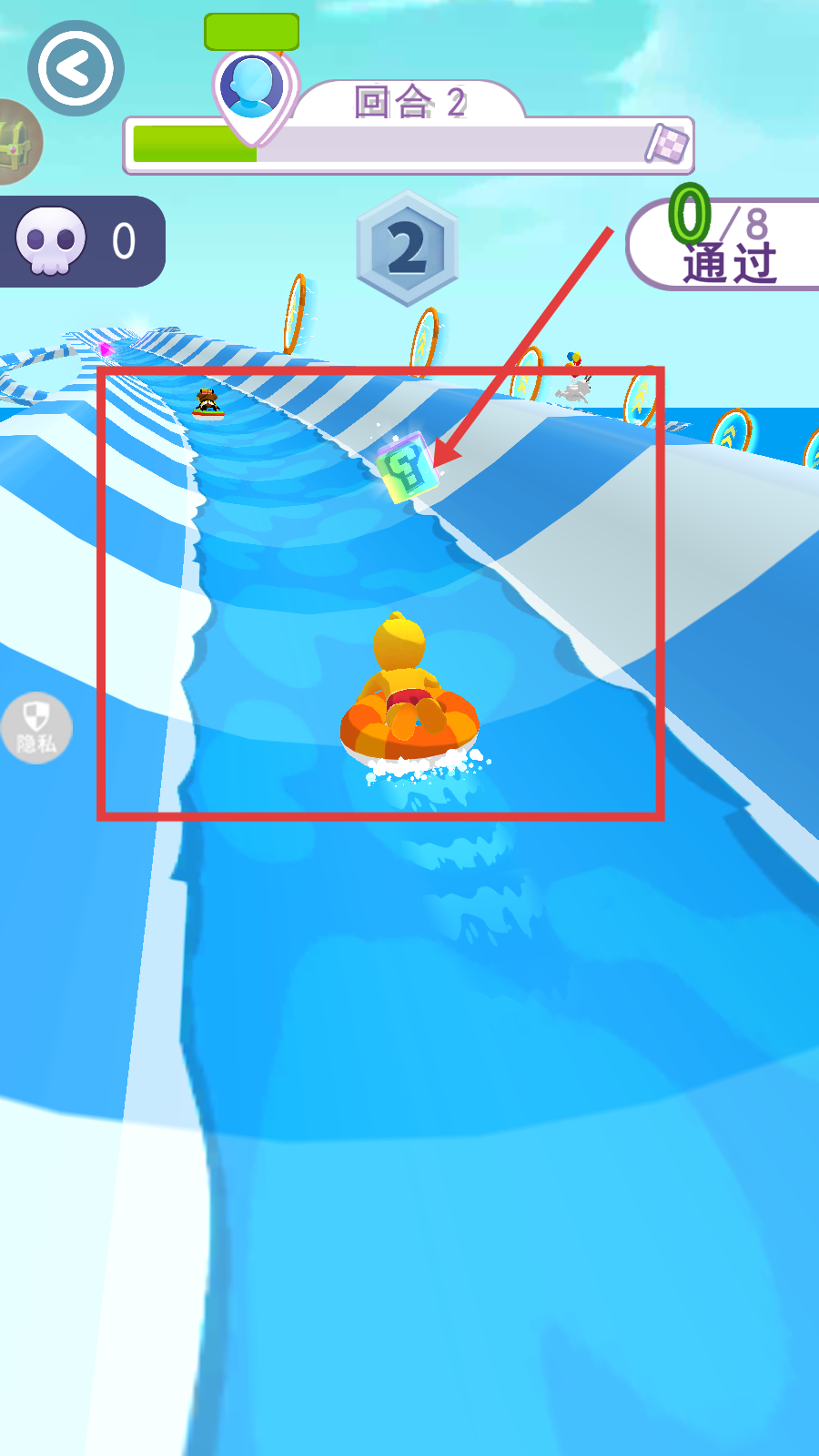 1、進入【回合2】水上賽道,優(yōu)先抓取前方【彩色方塊】,助力向【0/8-通過】目標(biāo)奮進,拉開差距。