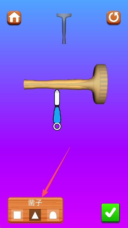 2、點擊下方鑿子按鈕,選擇不同形狀的鑿子,對木工物件進行雕刻打磨操作。