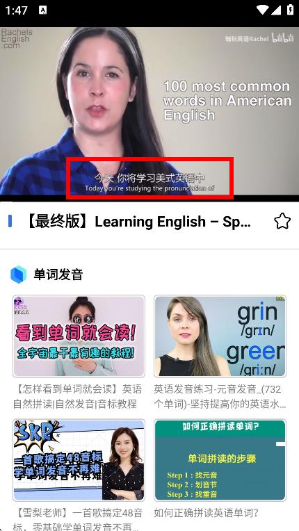 2、在視頻播放頁面,可觀看視頻學(xué)習(xí)美式英語發(fā)音。