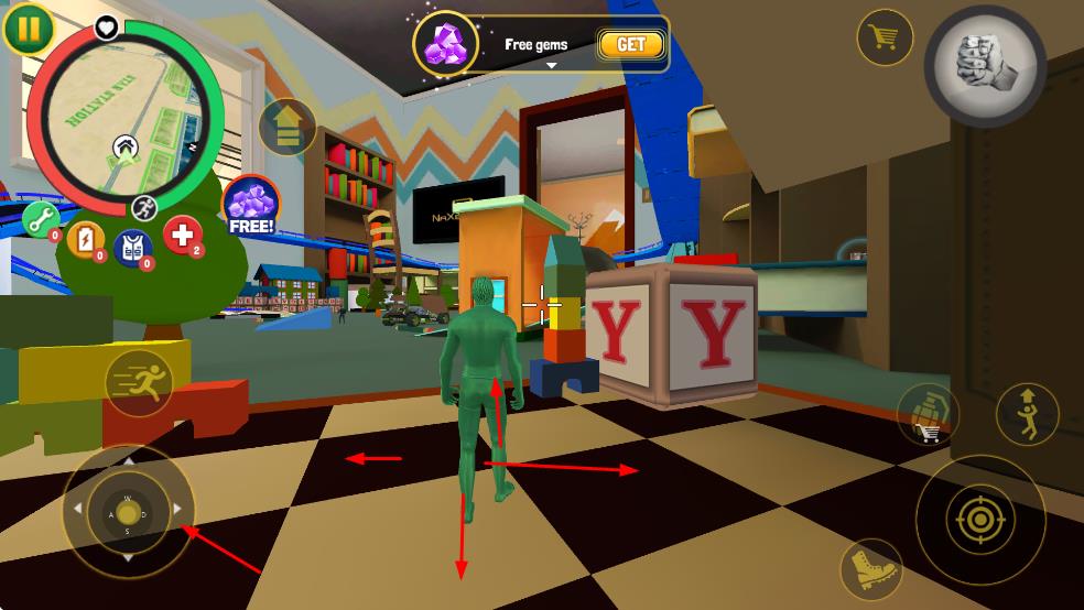 1、左虛擬搖桿操控角色在室內(nèi)場景移動,探索環(huán)境,觸發(fā)互動。