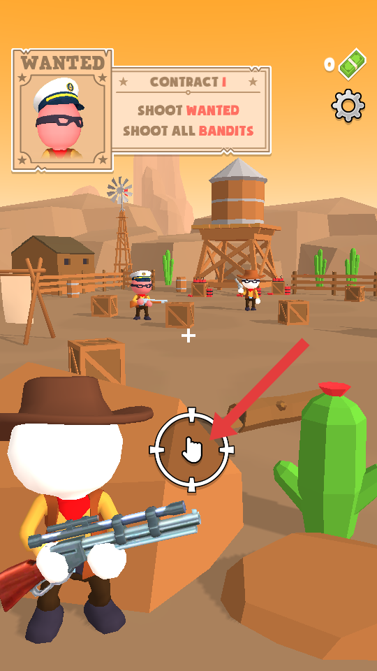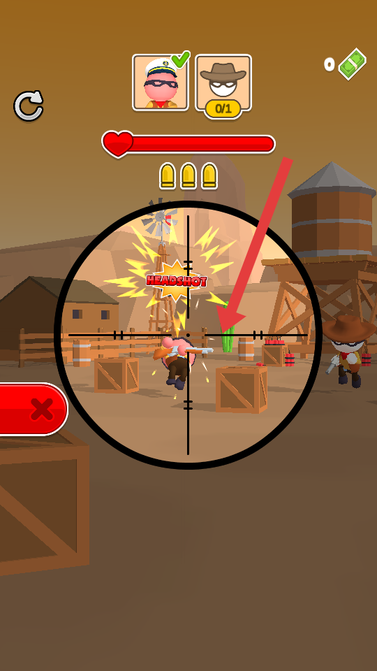 1、進入游戲,查看WANTED懸賞任務,鎖定戴白帽通緝犯,滑動屏幕瞄準,優(yōu)先爆頭觸發(fā)Headshot。