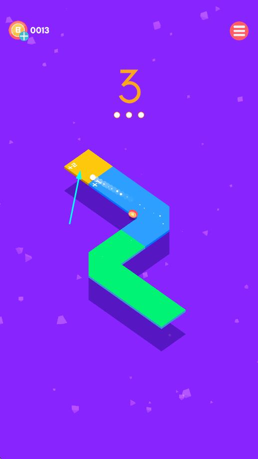 2、第3關(guān)引導(dǎo)小球-穿越藍(lán)黃板塊-借助軌跡慣性-讓小球順利抵達路徑末端通關(guān)。