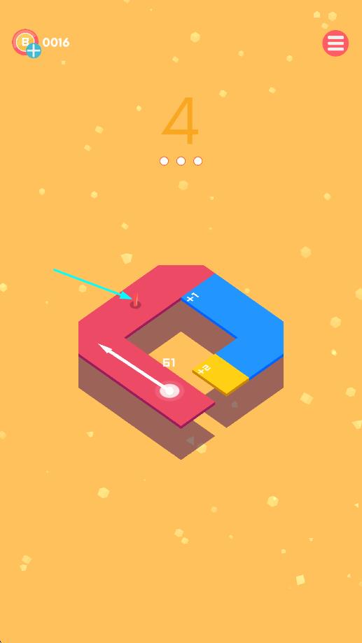 3、第4關(guān)分析紅-藍(lán)-黃路徑-操控小球沿箭頭-拾取【+1】增益-按路線規(guī)劃推進闖關(guān)。