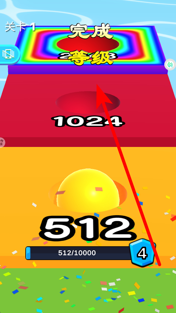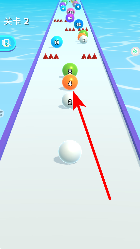 1、進(jìn)入關(guān)卡,操控白球移動(dòng),撞擊同數(shù)字彈球合并升級(jí),如白球撞數(shù)字2彈球合成4,再撞4合成8,依此規(guī)律,逐步合成高階彈球,提升等級(jí)。