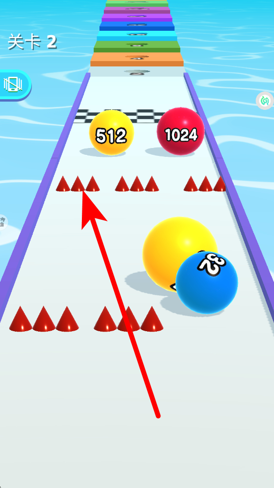 2、跑酷路徑中,留意尖刺等障礙,提前規(guī)劃彈球移動(dòng)方向,避開(kāi)障礙區(qū)域,優(yōu)先選擇數(shù)字彈球密集、障礙少的路線,保障彈球安全,持續(xù)合成。