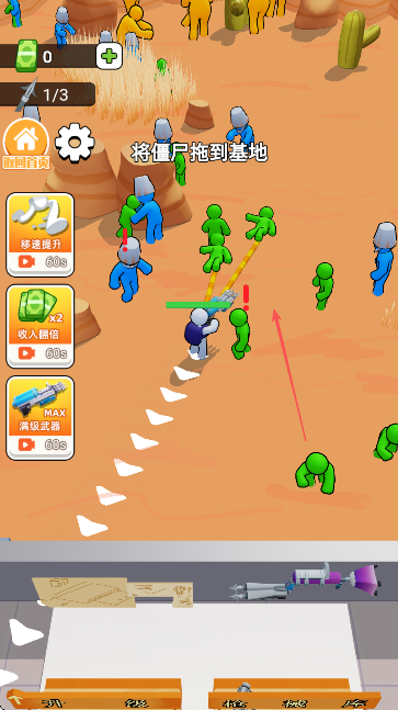 3、成功抓住僵尸后,按照任務提示將僵尸拖到基地,沿著箭頭方向移動,完成任務可獲取獎勵,提升關卡進度。