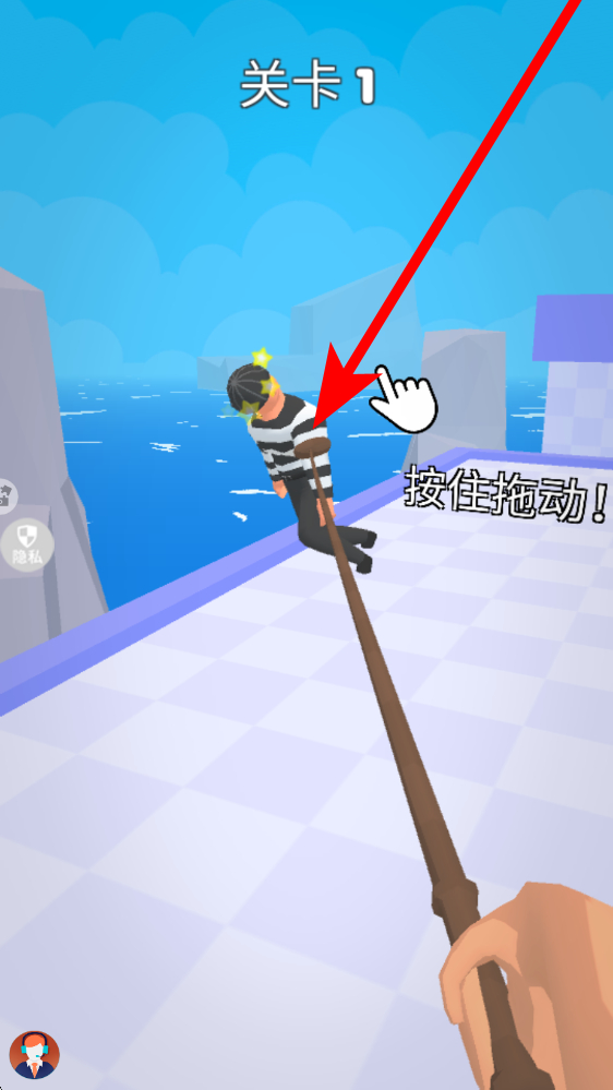 2、擊打后,按照提示按住并拖動目標(biāo)角色,通過拖拽操作,將其移動至合適位置讓其掉落,完成該操作要求,將進一步推進關(guān)卡。