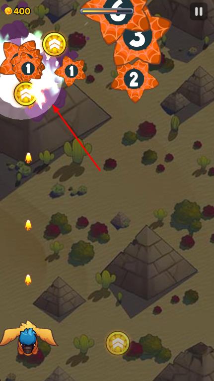 2、移動角色到【金幣】附近,持續(xù)攻擊剩余的【橙色-星形-帶數(shù)字】物體,快速獲取更多金幣。