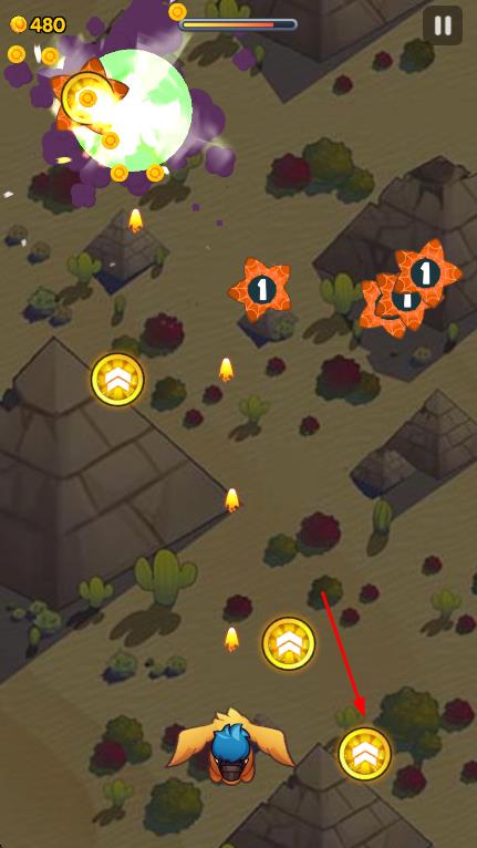 1、操控角色攻擊【橙色-星形-帶數(shù)字】的物體,同時靠近【金幣】,利用攻擊效果收集金幣。