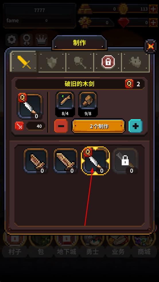 2、進(jìn)入制作界面,收集木材、石塊等材料,制作破舊的木劍等裝備,提升角色戰(zhàn)斗能力,為冒險(xiǎn)做準(zhǔn)備。