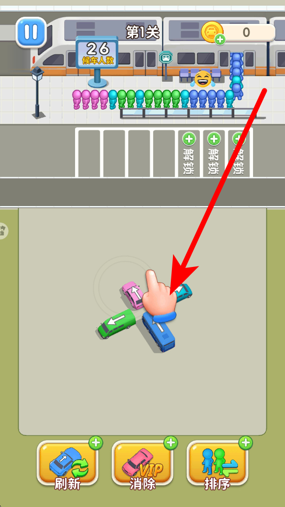 1、打開游戲后,在關(guān)卡場(chǎng)景中,會(huì)看到多輛停放的車輛,需觀察車輛的位置與可移動(dòng)方向,通過點(diǎn)擊等操作,移動(dòng)車輛,為目標(biāo)車輛開辟道路。