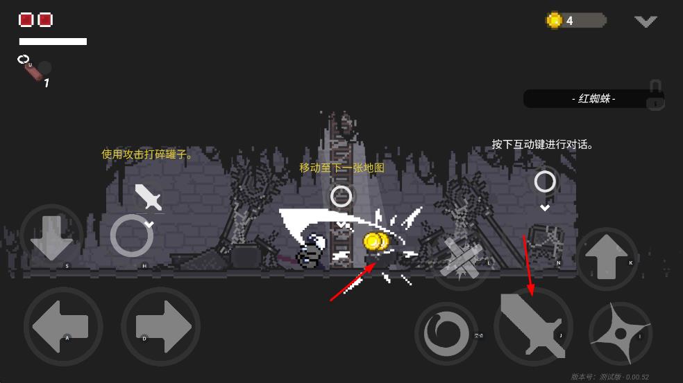2、點擊攻擊鍵可打碎罐子獲取道具,遇到敵人時,能發(fā)動攻擊,也可按住格擋鍵抵擋敵人進(jìn)攻,還能切換暗器作戰(zhàn)。