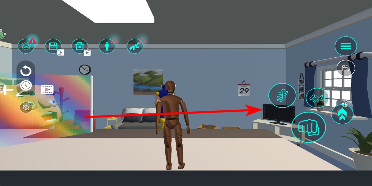 3、在場(chǎng)景內(nèi)可通過(guò)界面中的操作按鈕,如移動(dòng)、互動(dòng)等相關(guān)按鍵,操控角色在場(chǎng)景里自由行動(dòng),與周?chē)鼗?dòng),體驗(yàn)城市模擬生存的多樣玩法。