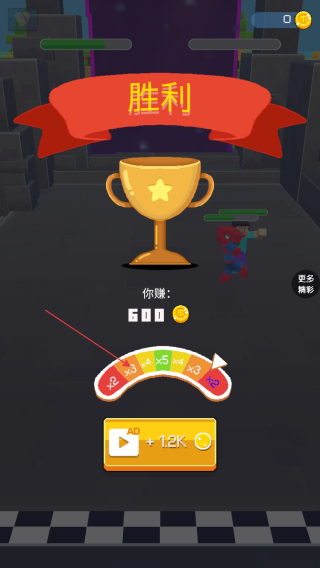 3、持續(xù)攻擊直至擊敗所有敵方小兵,看到勝利提示,完成關(guān)卡后可選擇獎勵倍數(shù),獲取金幣獎勵。
