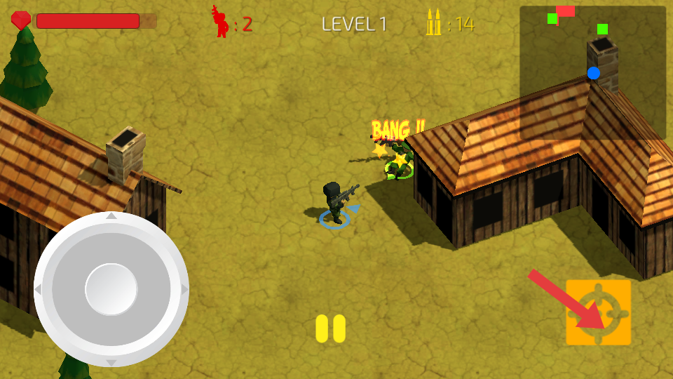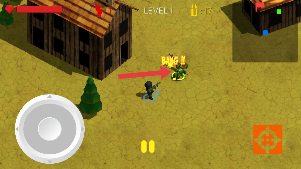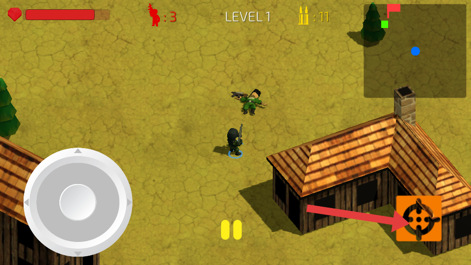 2、在LEVEL1的木屋與樹(shù)木場(chǎng)景中,移動(dòng)時(shí)盡量借助木屋遮擋身形,減少被敵人發(fā)現(xiàn)的概率,觀察到敵人后再起身精準(zhǔn)射擊。