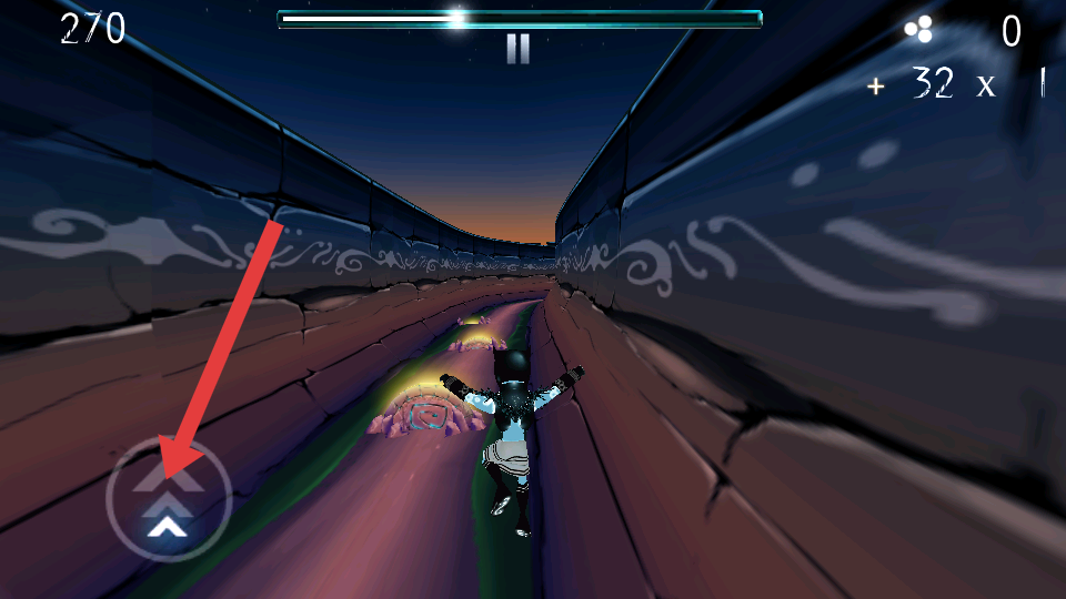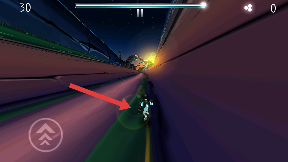 2、賽道上有發(fā)光道具時,點擊左側(cè)向上箭頭按鍵,可讓角色做出相應動作去獲取道具,助力游戲進程。