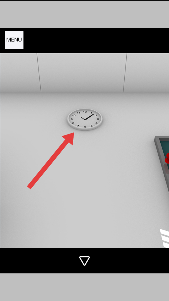 2、展示了帶有掛鐘的墻面場景,掛鐘顯示特定時間,左上角同樣有按鈕,下方有向下的三角形標識,可關注掛鐘細節(jié)。