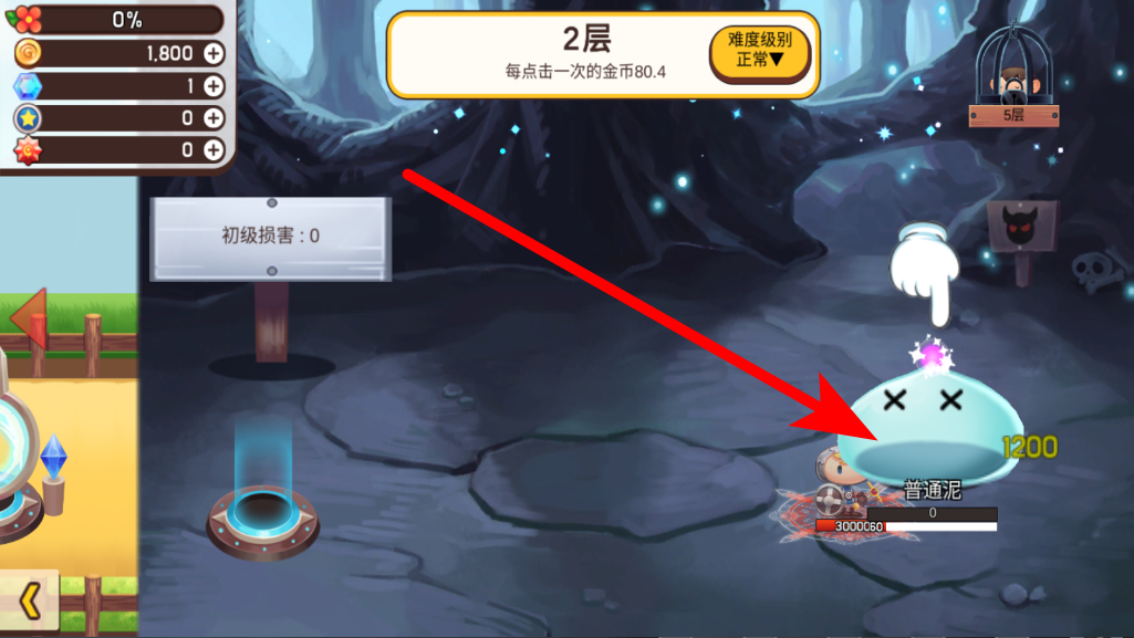 1、進(jìn)入游戲,在不同層級的場景中,會遇到如普通泥等怪物,點擊這些怪物,可對其造成傷害,同時每次點擊能獲取相應(yīng)的金幣,積累金幣用于后續(xù)發(fā)展。