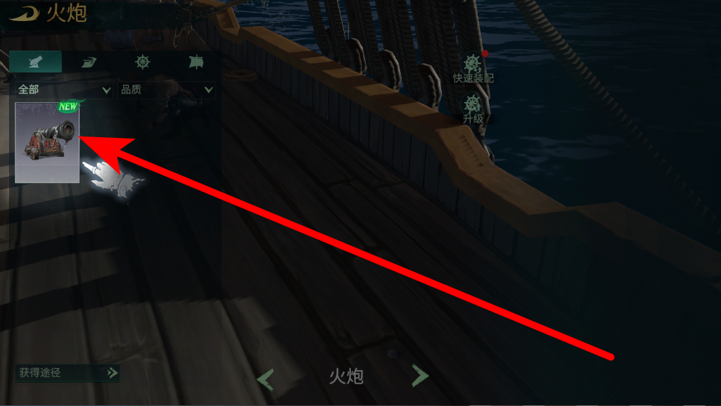 4、最后安裝火炮,在船只的火炮配置界面,選擇合適的火炮進(jìn)行安裝,提升船只的攻擊能力,讓船只在面對敵人時能有更強(qiáng)大的火力輸出。