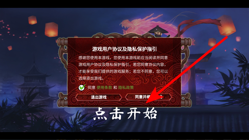 1、首先要進行賬號相關(guān)操作,在初始界面,若同意相關(guān)內(nèi)容,可點擊同意并繼續(xù),完成這一步驟后,進入到后續(xù)的冒險環(huán)節(jié),邁出冒險的第一步。