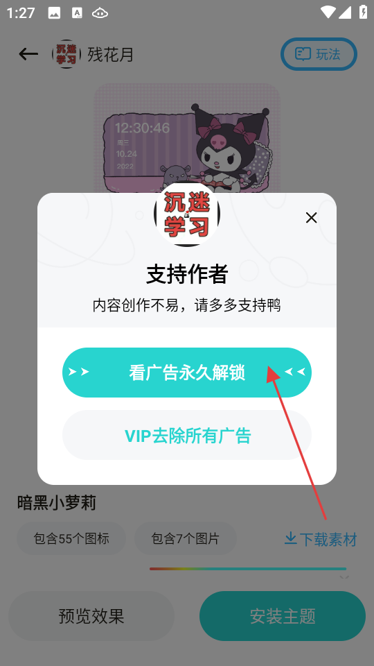 3、若彈出支持作者窗口,選擇看廣告永久解鎖。