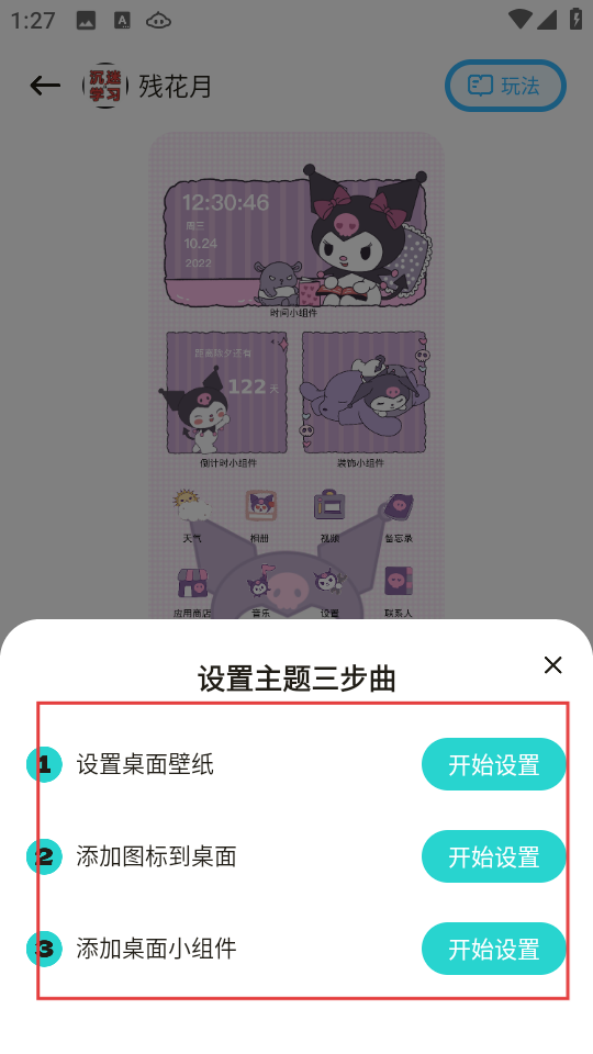 4、根據(jù)設(shè)置主題三步曲提示,依次設(shè)置主題。