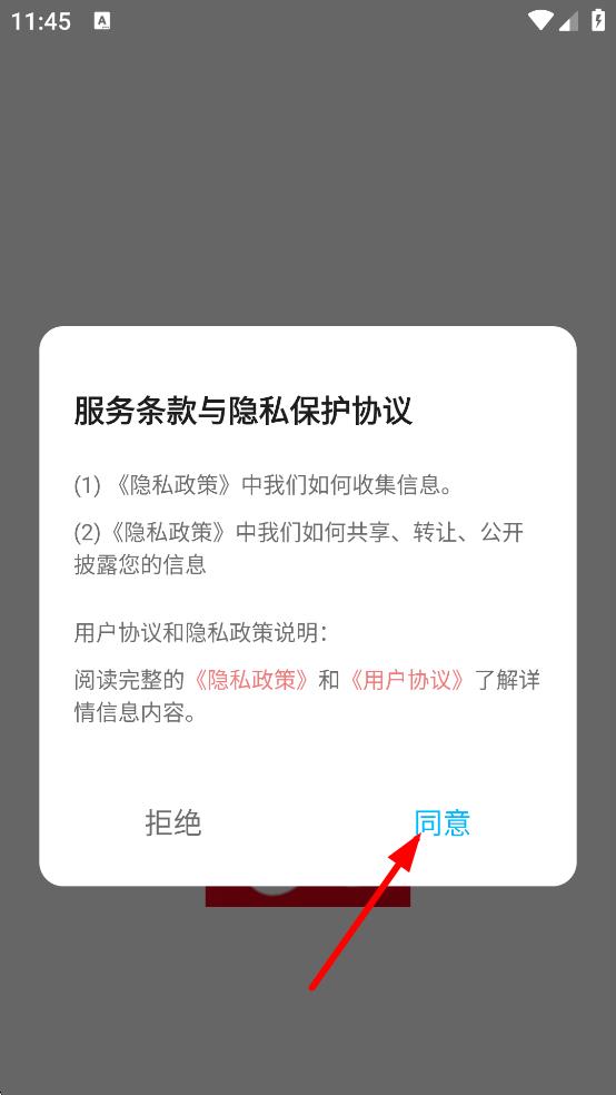 1、在服務(wù)條款與隱私保護(hù)協(xié)議彈窗中,點(diǎn)擊同意,進(jìn)入軟件主界面。