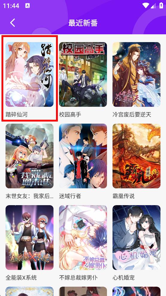 3、最近新番列表中,選擇動(dòng)漫,如踏碎仙河,點(diǎn)擊進(jìn)入動(dòng)漫詳情。