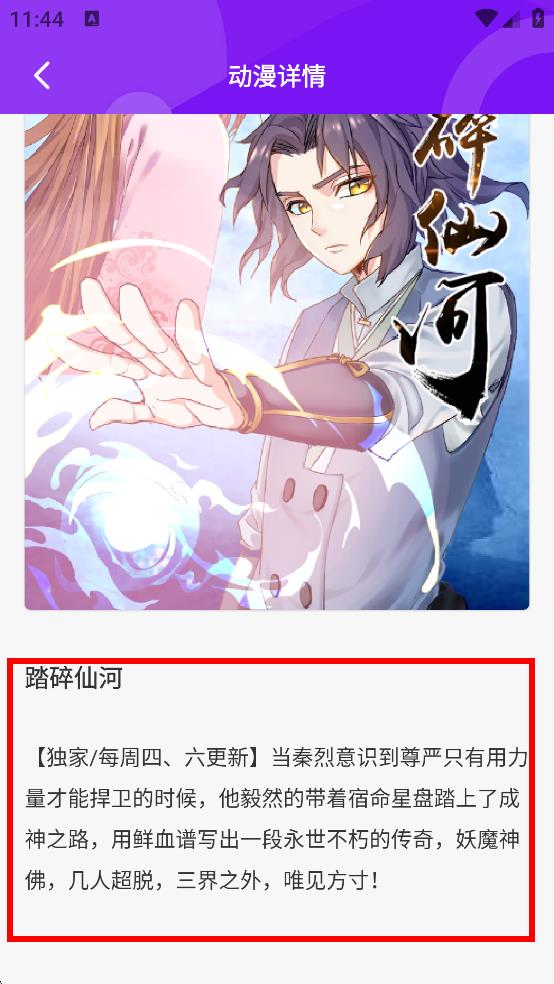 4、最后在動(dòng)漫詳情頁,可查看踏碎仙河的詳細(xì)介紹等內(nèi)容。
