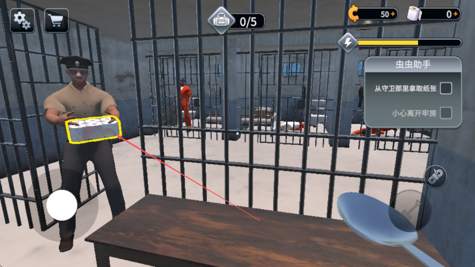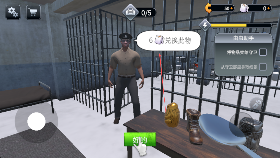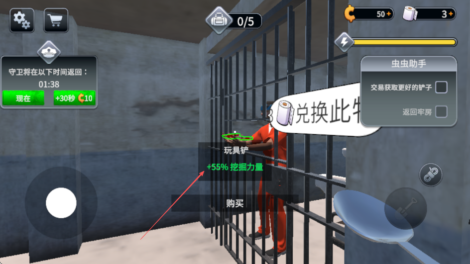 4、看到其他囚犯或守衛(wèi)有可交易提示,如兌換此物,根據(jù)需求和資源情況,點(diǎn)擊購買交易更好的挖掘工具。
