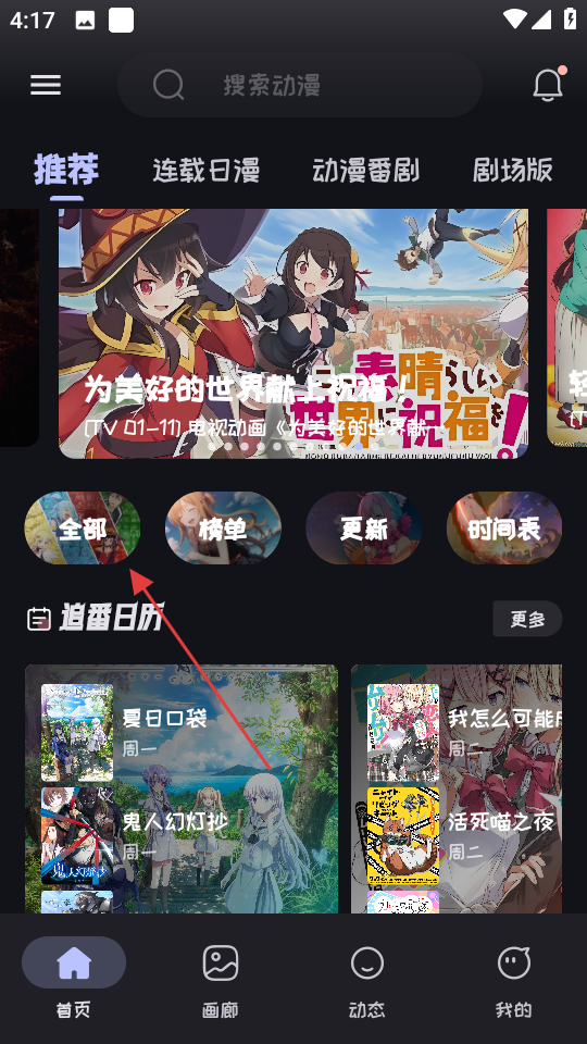 1、在動漫類應用首頁,點擊全部,進入動漫篩選目錄頁面。