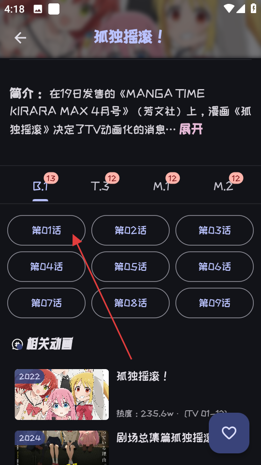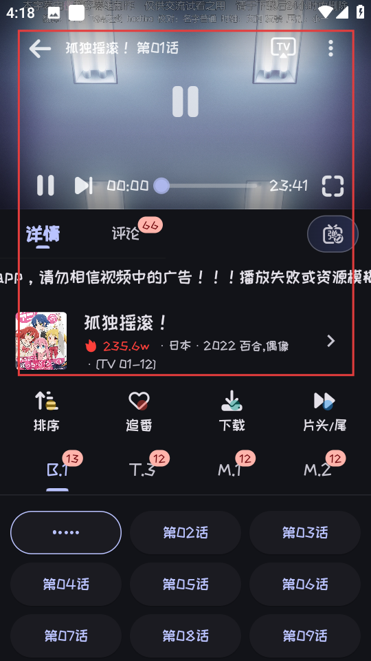 4、在播放頁面,即可觀看孤獨搖滾第1話內(nèi)容。