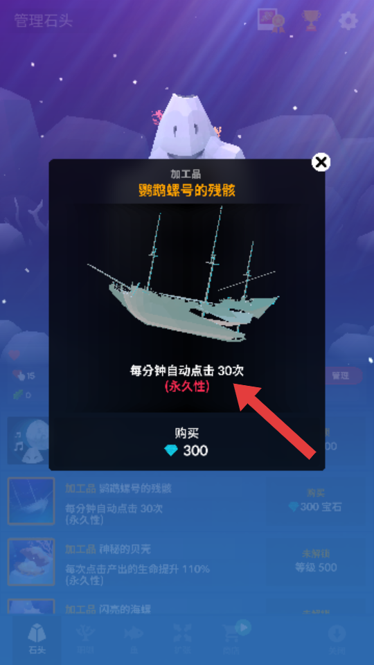 4、利用資源購買或兌換合成材料,若部分合成材料難以通過常規(guī)方式獲取,使用寶石,如購買鸚鵡螺號的殘骸所消耗的寶石。