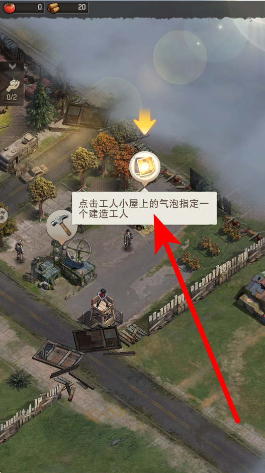 3、接著指定建造工人,找到工人小屋,點(diǎn)擊小屋上的氣泡,從中指定一個(gè)建造工人,讓其參與到后續(xù)的建造工作中,推進(jìn)建設(shè)進(jìn)程。