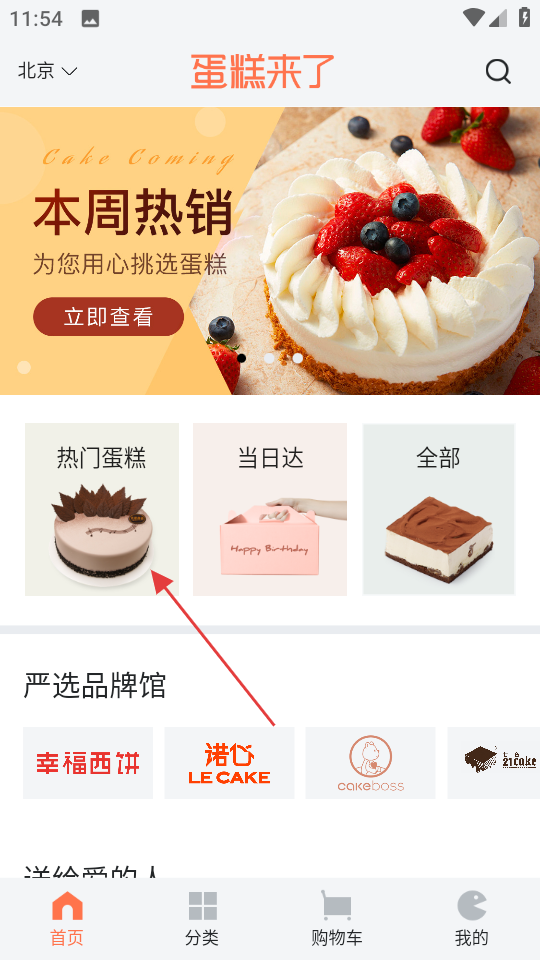 1、在蛋糕來了首頁,點擊熱門蛋糕,進入熱門蛋糕列表頁面。