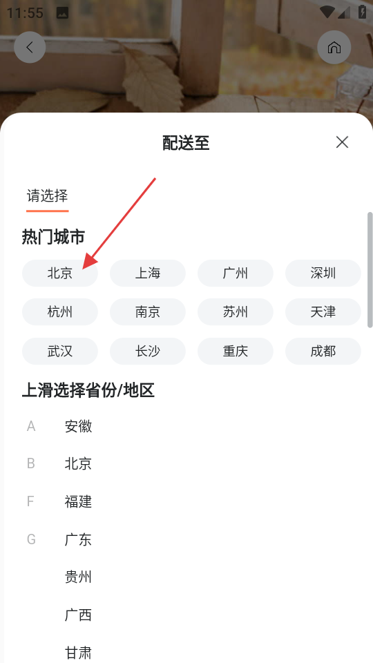 4、在配送地址選擇頁面,選擇北京作為配送城市,即可進行后續(xù)購買操作。
