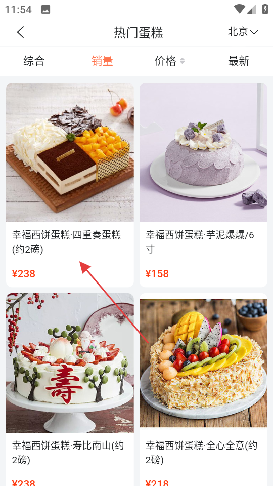 2、在熱門蛋糕列表頁面,選擇四重奏蛋糕,進入該蛋糕詳情頁面。