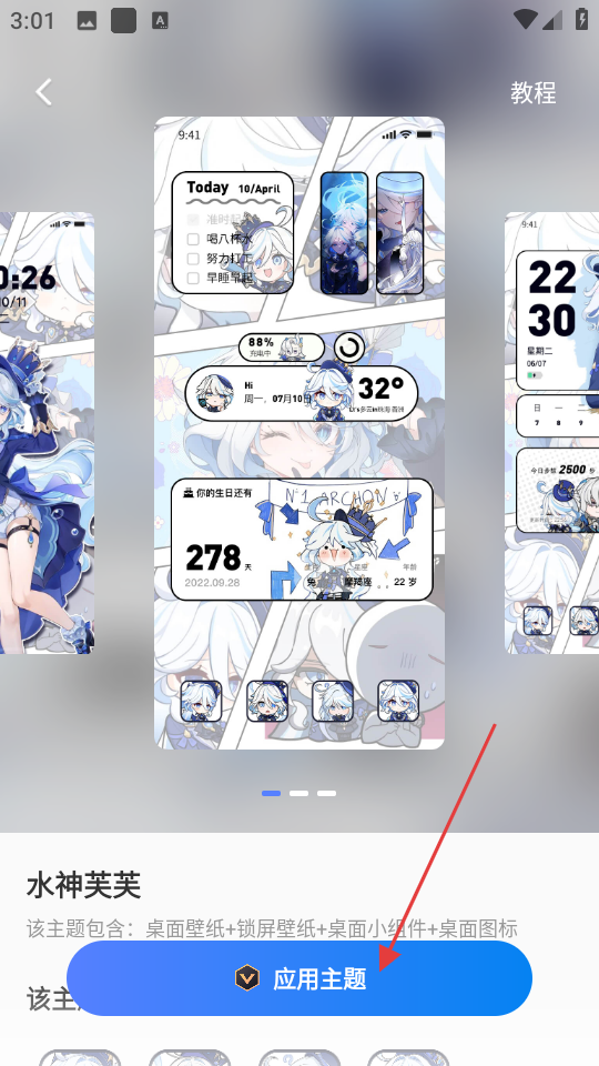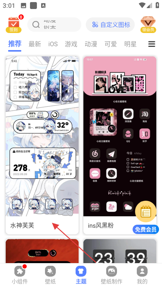 2、進(jìn)入主題頁(yè)面后,選擇喜歡的主題,比如水神芙芙。