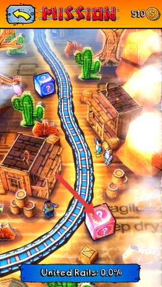 3、問號(hào)方塊探索,遇到場景中帶有問號(hào)的方塊時(shí),點(diǎn)擊即可觸發(fā)隨機(jī)事件或獲取道具,可能獲得軌道建設(shè)所需的建材。