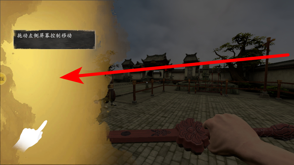 2、輕輕拖動左側(cè)屏幕,就可以精準(zhǔn)控制角色移動,讓角色在古色古香的場景中順暢自由地穿梭,順利前往任務(wù)目標(biāo)所在的具體位置,開啟冒險。