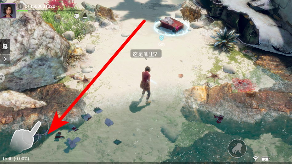 2、然后探索場景,進(jìn)入荒島場景后,操控角色在沙灘、巖石等不同區(qū)域移動,探索周圍環(huán)境,尋找有用的線索與物資。