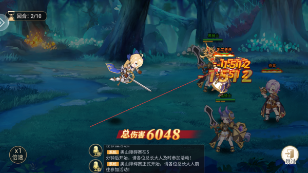 3、戰(zhàn)斗過程中,觀察屏幕下方的傷害數(shù)值和總傷害數(shù)據(jù),了解己方英雄輸出情況,適時點擊倍速或跳過按鈕,加快戰(zhàn)斗進程。