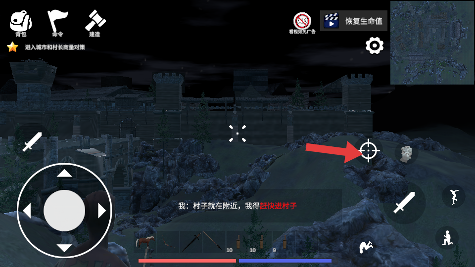 2、當收到進入城市和村長商量對策的任務提示時,操控騎馬角色前往城市入口,靠近城門后自動的觸發(fā)進入動畫。