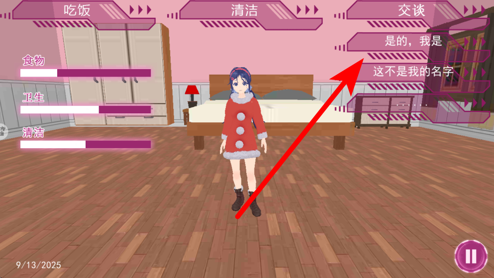 3、然后進(jìn)行交流互動,交流環(huán)節(jié),會出現(xiàn)不同的交流選項,根據(jù)自己的想法選擇合適的交流內(nèi)容,和米塔進(jìn)行互動,增進(jìn)彼此的感情。