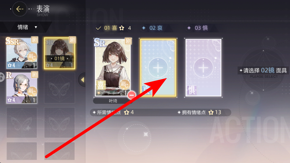 4、表演時需布置情緒卡牌,有喜哀懼等分類,要依據(jù)表演需求挑選合適卡牌,借助卡牌展現(xiàn)角色情緒,讓表演更到位。