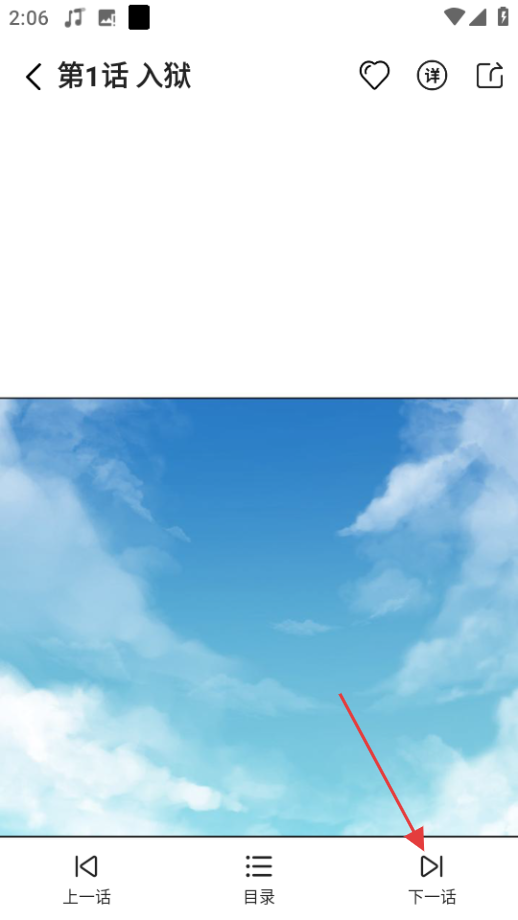 4、在菜單頁(yè),點(diǎn)擊底部的下一話按鈕,可閱讀下一話內(nèi)容。