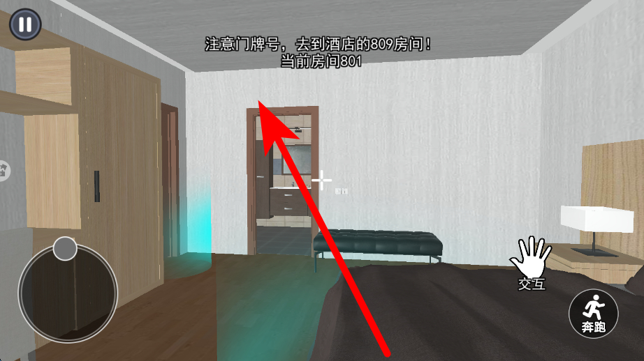 3、操作要通過虛擬搖桿等方式,控制角色在酒店房間及走廊中移動,靈活調(diào)整角色位置,以便更好地探索房間、尋找線索。