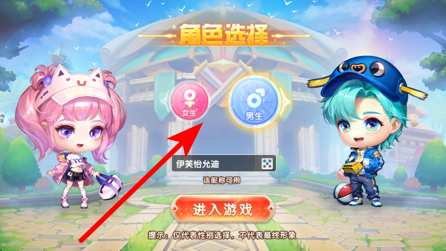 1、開(kāi)始時(shí),挑選心儀的角色,確定后點(diǎn)擊“進(jìn)入游戲”,開(kāi)啟在休閑競(jìng)技類(lèi)作品中的游玩之旅,準(zhǔn)備體驗(yàn)后續(xù)的房間、賽事等操作。